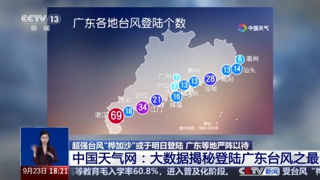 超强台风“桦加沙”正在逼近广东倍顺网,成为今年以来影响我国的最强台风。预计将于明天(24日)中午到晚上在广东珠海到湛江一带沿海登陆。