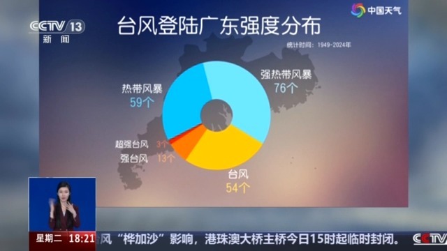 从登陆强度来看,登陆广东的台风大多以强热带风暴、热带风暴、台风级别为主,1949年至2024年间,登陆广东的强台风共13个,超强台风3个。